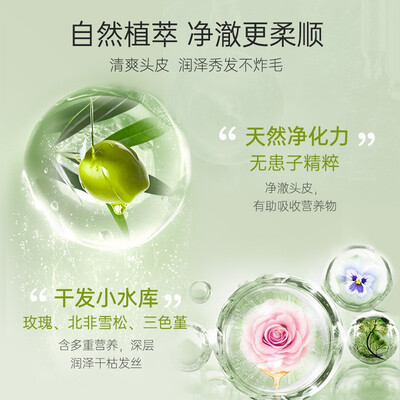添加无患子、玫瑰和北非雪松等植物提取物,无硅配方温和洁净头皮,同时滋养头皮和头发,具良好水养和保湿功能,秀发弹润有光泽。