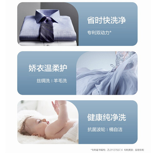 专用筒自洁模式,定期自清洁,有效去除筒内堆积的顽固污渍和微小细菌,避免衣物二次污染,保障衣物卫生。