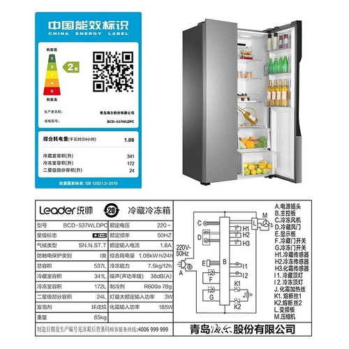 537L豪华大容量,海量食材轻松容纳,一次采购一周新鲜。内置DEO净味系统,储放榴莲也能不污染其他食材,时刻保持原味。