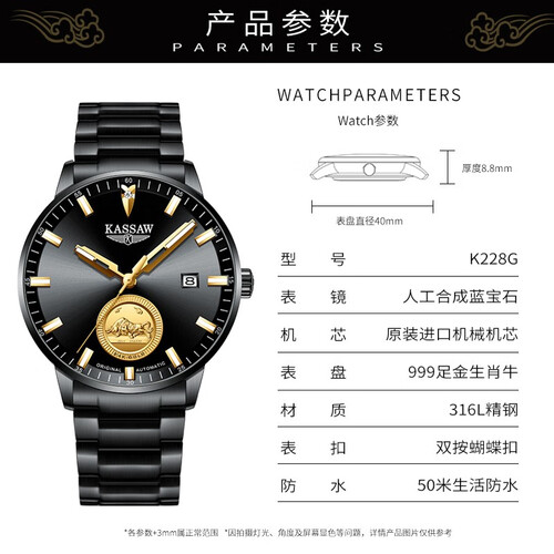 纯黑盘面中融入生肖牛立体图案,丰富细节,成为腕上的焦点。经典圆形盘面,致敬经典,长时间佩戴不会过时。