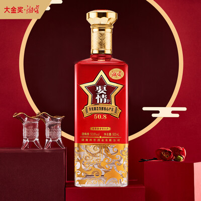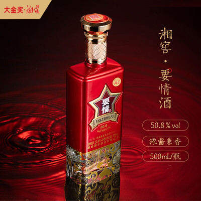 来自国家4A级别生态景区,酿酒环境与选材更讲究,兼香型白酒。整体瓶身马王堆汉帛纹饰与金属工艺镶嵌,瓶身很精致。