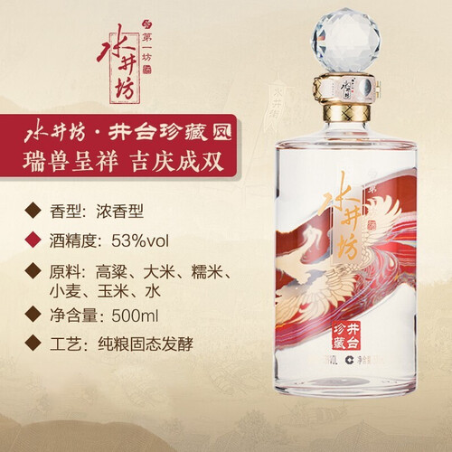 酒瓶上带有一只栩栩如生的凤凰,随处一置犹如一件艺术品。拥有丰富的酿造历史,让您感受到佳酿的滋味。
