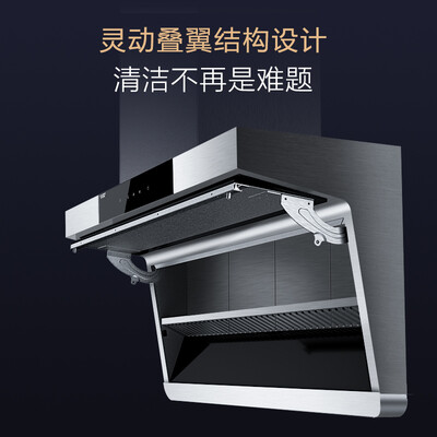 黑晶玻璃面板的采用,让烟机的设计感更简单大方,塑造一个典雅的家居环境。灶具也采用黑晶玻璃材质,轻轻一擦,就能重回暂新。