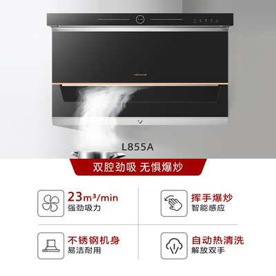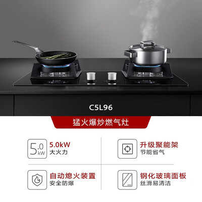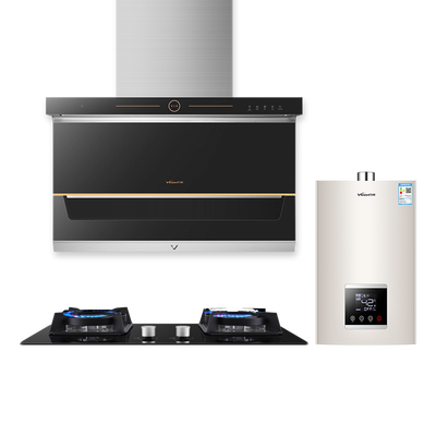 顶侧双吸结合全面拢烟,可快速排出油烟。烟机运行延长90秒,能把烟机内部和厨房余烟吸净。灶具采用聚能炉架,让锅底受热更均匀。