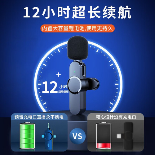智能降噪DSP芯片,消除环境噪音,360度无死角收音,响应迅速,收音细腻更清晰。接收器内置充电口,给你的充电带来方便。