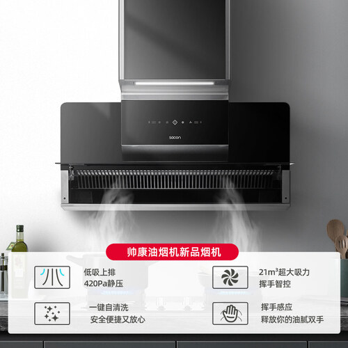 创新式油烟吸排方式,实现多方位排烟,营造更无油烟的烹饪环境。潜曜黑机身设计,时尚高颜值,轻松适配家居风格。