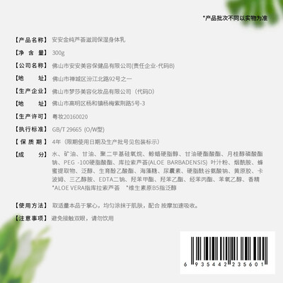 安安金纯芦荟身体乳
