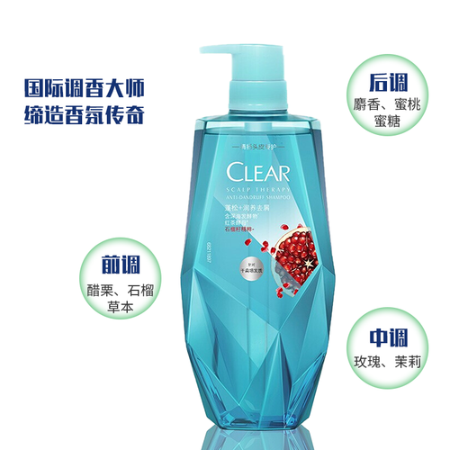 特别添加石榴精华,天然植萃更新鲜,可放心接触头皮。内含微米级的清洁因子,有助于去除头皮浊质。