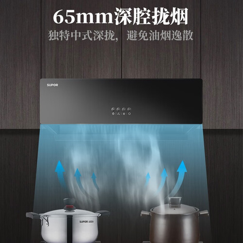 710mm小巧机身,适配小户型厨房。独有中式深拢设计,有效避免油烟逃散。一体成型式黑晶玻璃,日常更易清理。