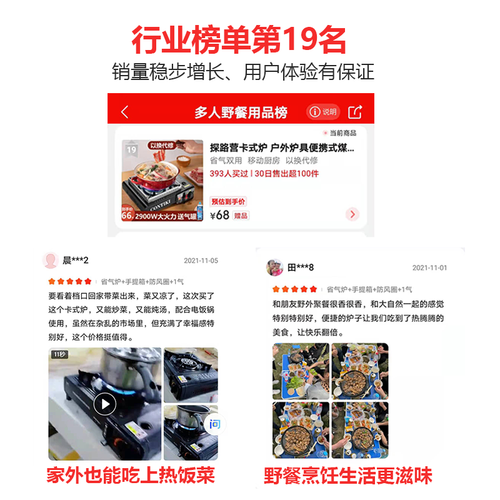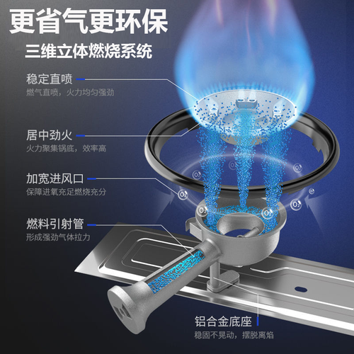磨砂材质炉头,内置防风罩,狂风不易侵入,安全防护,气压过大时自动断气。