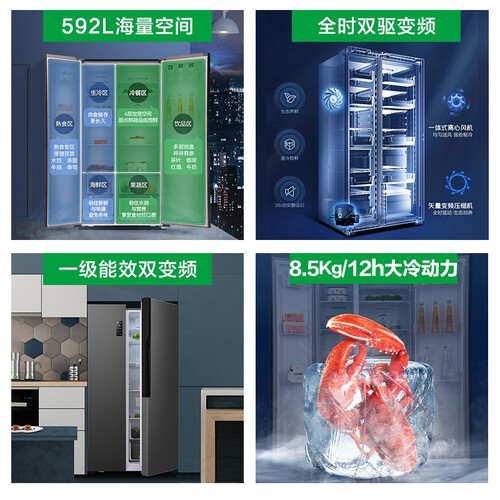 全时双驱变频,可实现智能控温,有效延长食物的保鲜期。8.5kg大冷冻力,快速释放冷气,锁住食材内部营养。