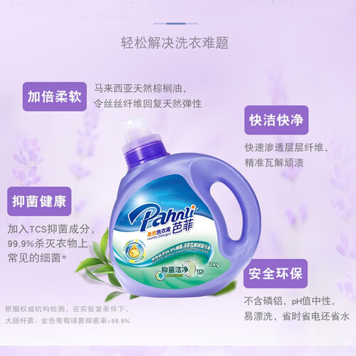 添加的棕榈油柔软剂,使衣物表面形成一层保护,柔软加倍,TCS抑菌成分,消灭常见细菌,让衣物能够得到彻底清洁。