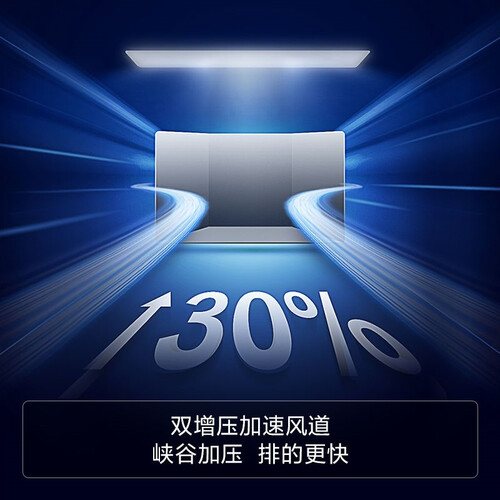 双增压加速风道,提升油烟的吸排速度,让您畅快享受无烟烹饪;带有自感应照明大灯,烹饪视野更加明亮。