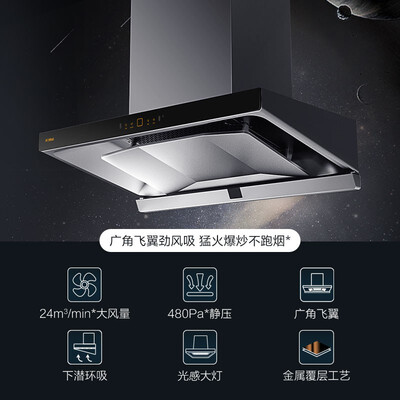 广角飞翼单板设计,使负压分布均匀,拢烟效果更好。内置双重红外感应,挥手开关自如,无需触碰面板,方便快捷。