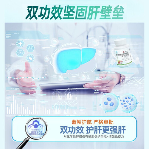 本品经动物实验评价,具有增强免疫力的效果,对化学性肝损伤有辅助保护功能的保健功能。可以改善消化和代谢,有效提高机能。
