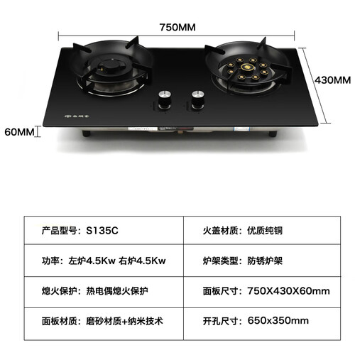 内置智能体感装置,可通过手势感应开启,无需接触即可开机,操作简单。燃气灶使用铜质炉头,具有耐高温的特性,使用寿命长。