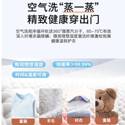 拥有智能预约功能,有效节省家人的洗衣烦恼,洗衣更轻松。微蒸汽功能,抑制细菌滋生,守护全家人的穿衣健康。