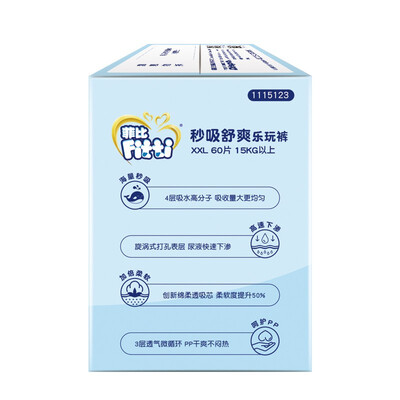 具有干爽透气的作用,迅速排出热气湿气,使屁屁干爽不闷湿。结合海量秒吸功能,吸收尿液效果出众,晚上睡眠更舒爽。