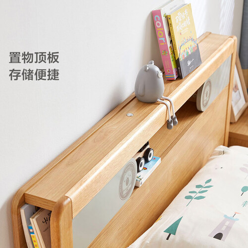 具有灯光效果的储物床,轻触即亮,贴心守护孩子的安全,在黑夜里不再慌张,让家长安心常在。储物床头的设计可以收纳多种物品,方便实用。