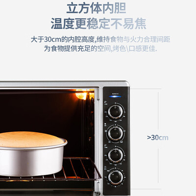 内胆添加了不粘涂层设计,烘烤时不怕顽固油污,一抹即净。内置照明灯装置,能够清晰地观察到烘烤状态,直观明了。