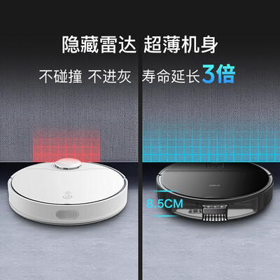 内置超声波避障传感器,灵敏避开障碍物,清扫时不会碰倒家具。2650Pa大吸力除尘,地板缝隙内的污垢也能轻松去除。