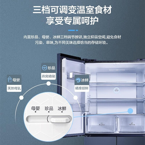 内置碧玺负离子净味养鲜装置,快速吸附分解异味,并长效抑菌防霉,守护食材健康。智能双变频制冷,温度波动更小,更节能省电。