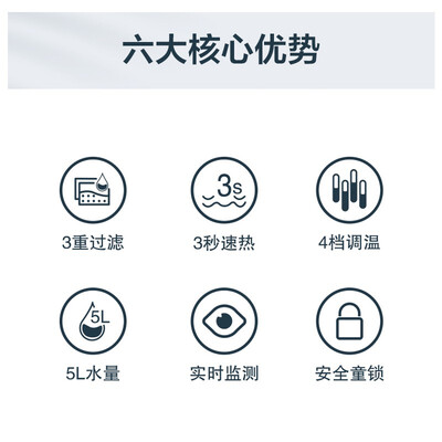 搭配清晰的大屏幕,实时查看水温和水质,方便操控更省心。贴心的童锁保护功能,避免孩子烫伤,安全有保障。