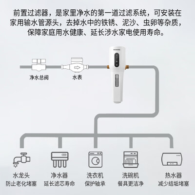 前置过滤器,能够彻底清除水中的杂质,健康用水很是安心。即滤即用技术,全屋同时用水都没有压力,水量充沛。