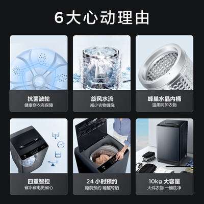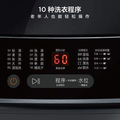 采用蜂巢水晶内桶,避免衣物缠绕勾丝,更好呵护衣物不受损伤。10种洗衣程序,功能一目了然,老人可以轻松操作。
