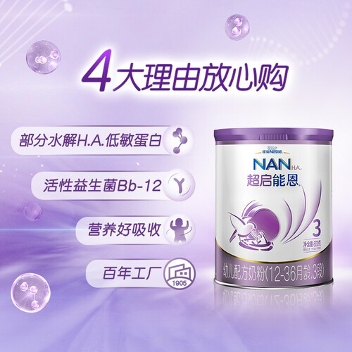 采用适度水解工艺打造,使得奶粉致敏性更低,易敏体质稍微宝宝也能安心食用。内含锌元素,能够改善宝宝食欲,让宝宝更爱喝。