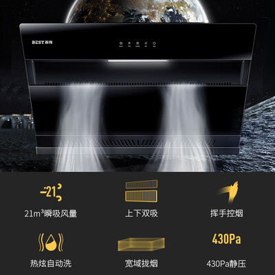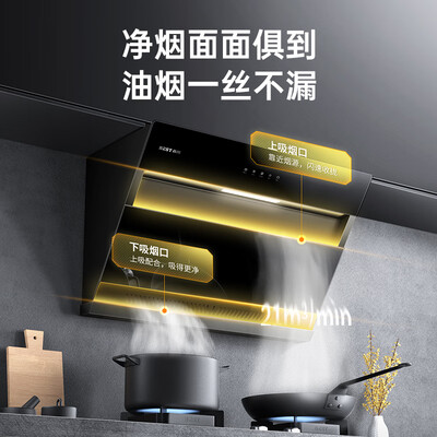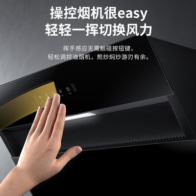 上下双吸设计,形成黄金控烟区,油烟未升腾扩散就吸净,面面俱到不跑烟。挥手智控操作,智能感应无需触碰按钮键,轻松调控。