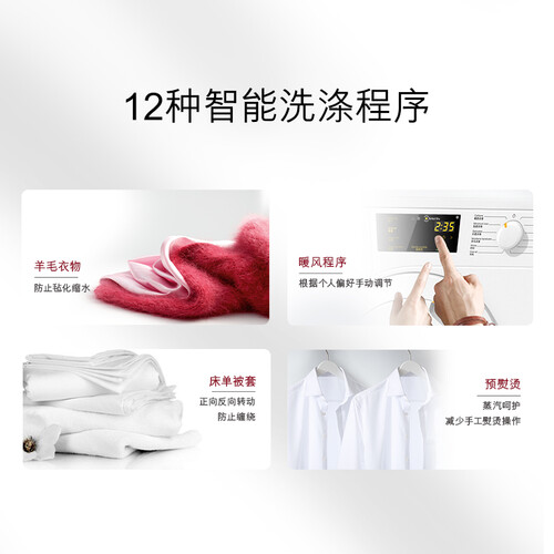 定制香薰护理技术,横扫衣物异味,衣物清香无异味,自信社交无尴尬。搭载12种智能洗衣程序,精细洗护不同面料衣物。