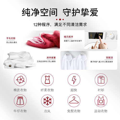 搭载了热泵技术,利用中低温烘干衣物,避免高温烘干带来的衣物损伤。采用蜂巢滚筒设计,可以降低对衣物的磨损。