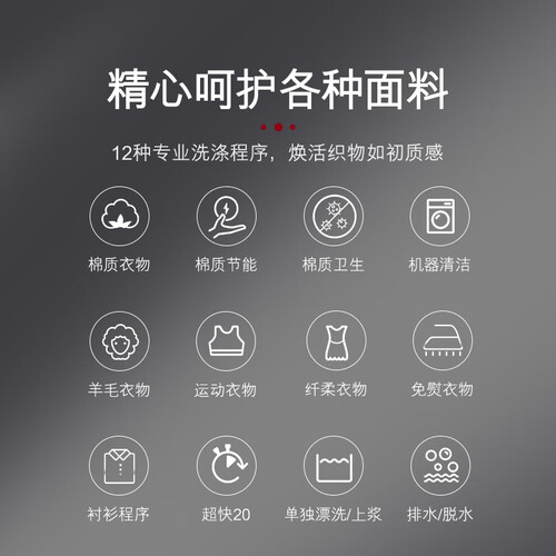 内筒采用蜂巢式结构设计,可减少与衣物接触和摩擦,衣物清洁不易勾丝。更有持续添衣功能,即使遗漏衣物,也能中途添加洗涤。