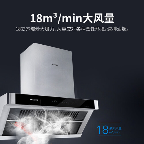 拥有18m³/min的大吸力,从容应对升腾油烟,快速吸除油烟。搭配拉伸不锈钢集烟腔,带来更长的使用寿命。