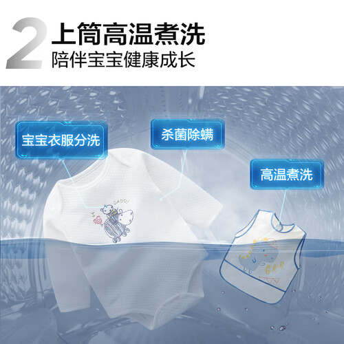 一机双筒的设计,节省更多占地面积,实现精致洗护。多维降噪科技,呵护家人睡眠不打扰,洗衣更安静。