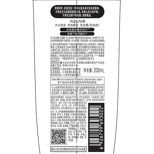 添加水源净活分子,有效去除聚集在头发上的钙分子,防止头发粘连。添加控油分子,吸附油脂能力强大,告别油头。