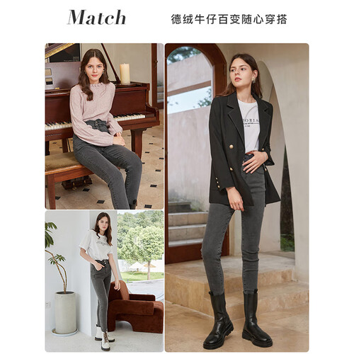 黑科技德绒牛仔面料,内里蓄热,修身保暖。 花瓣高腰设计,收腹塑形,提臀显瘦。后身贴袋,小脚裤脚设计,前卫时尚感十足。