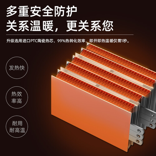 甄选优质进口防火PP材料,整机阻燃,有效提升使用安全系数。500W功率搭载循环对流风道,温暖无需久久等待。