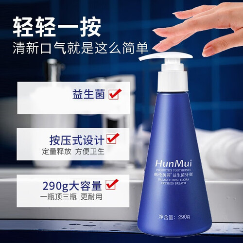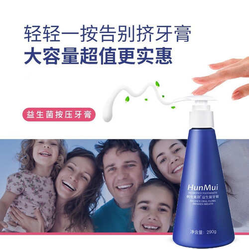富含益生菌成分,能够有效平衡口腔菌群,维护口腔生态平衡,保持口腔健康。按压式设计,用多少按多少,使用更方便。
