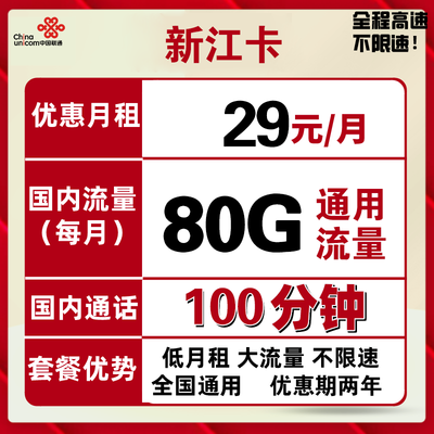 联通霸宝卡 15包61G全国流量+100分钟国内通话,不限速,支持5G/4G,两年套餐。正规套餐 客服可查