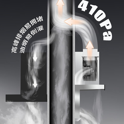 集烟腔经过加厚处理,搭配410Pa的高风压,能够将油烟牢牢的锁住,预防出现油烟倒灌的现象,即使做饭高峰期也能够畅快直排。