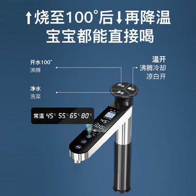 智能温开水龙头,可即时满足泡奶和泡茶等不同需求,随接随喝不用等。龙头可90°旋转,洗菜洗碗更灵活,操作优雅不费力。