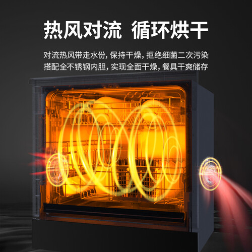 全不锈钢内胆了可以做到内壁全烘干,避免细菌滋生,远离二次污染。6挡智能可调软水系统,减少水垢,呵护餐具。