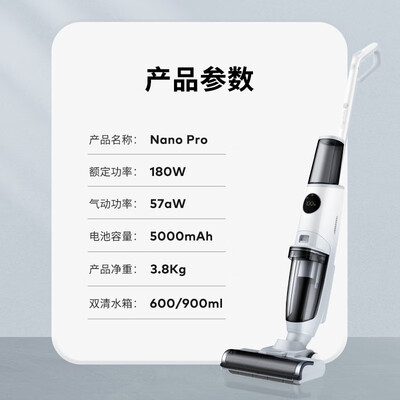 电解水技术,有效清除地面的污垢,让清洁卫生更加简洁方便,900ml水箱,大容量的蓄水,保障运行过程中不用补水。