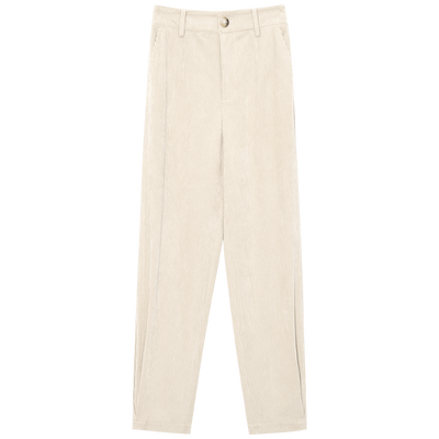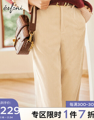 复古灯芯绒面料,手感柔软细腻,穿着舒适。中高腰显瘦版型,有效遮盖扁臀,隐藏小肚腩,纵向拉长腿长,潇洒有型,时髦好看。