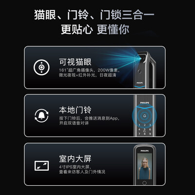 锁面带有4英寸IPS显示屏,老人儿童无需通过手机或者猫眼,点击屏幕按钮便能直接看到访客。