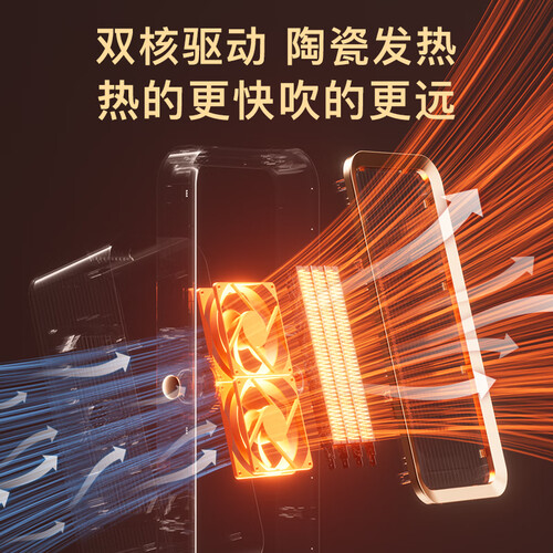 新升级3D立体送风功能,自动摇头,快速为室内增温,呵护手脚冰凉人群。内置PTC陶瓷发热体,热效率高达99%,驱赶凉意。