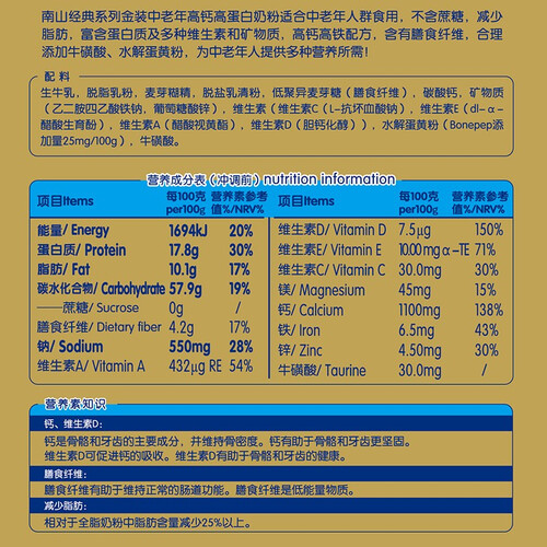 南山 金装中老年高钙奶粉