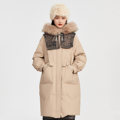 三彩 白鸭绒长款羽绒服
